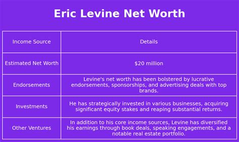 - Growth Opportunities: Personal investments can provide Levine with opportunities for growth and expansion. By investing in early-stage companies or emerging markets, he can potentially tap into high-growth opportunities that can enhance his net worth.